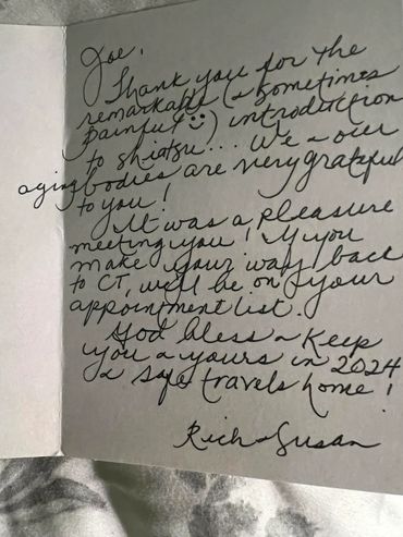 My experience with Joe was great! I sit behind a desk for work. This has caused a lot of neck, back and shoulder pain. After this Shiatsu triggerpoints massage my pain has subsided my neck can turn much better I cannot thank Joe enough. Madison